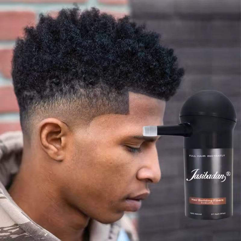 BUNEE Hair Fiber 27.5g: Men's natural hair-thickening fibers for balding areas, fills part lines, includes 27.5g fiber powder.